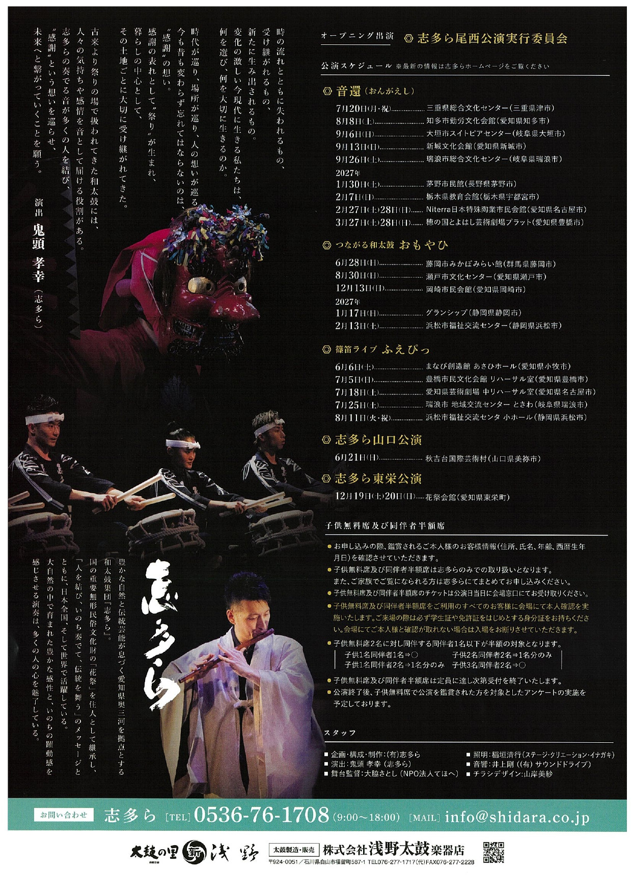 ※子供(4才~18才)無料席(3歳以下入場不可)および同伴者半額席は、志多らのみの取り扱いとなります。 - チケット取扱