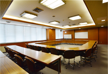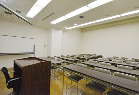 - 教室型、窓なしのお部屋です。3人掛机10脚。少人数の会議・打ち合わせに。